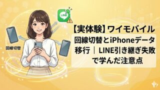 ワイモバイルの回線切替とiPhoneデータ移行を実体験で解説。eSIMの切替手順や失敗しやすいポイント、LINEバックアップ未実施によるトラブル事例、やり直し方法まで家族4人の乗り換え体験をもとに分かりやすくまとめました。